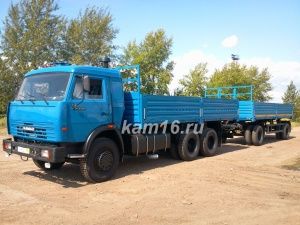 Автомобиль КамАЗ можно применять в качестве автомобильного поезда. Грузоподъемность автомобиля - 11000 кг. Применение автомобиль нашел в строительной сфере. На ней можно перевозить большие объемы стройматериалов. Колесная формула модели 6х4. Несмотря на внушительную массу, модель развивает скорость до 105 км/ч.